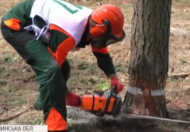 На Волині два десятки лісорубів змагалися за звання найкращого. Щоб пройти випробування, потрібно було на швидкість скласти бензопилу, повалити дерева й розрізати їх на рівні частини.