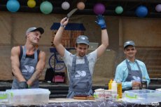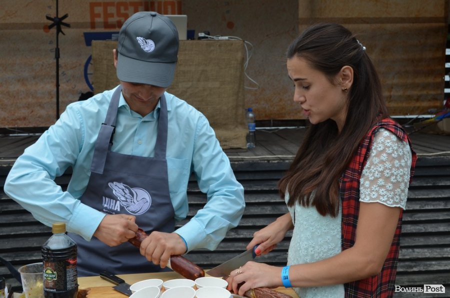 Поки гості фестивалю "окупували" фуд-корти та фотозони, у центрі площі сільськогосподарське господарство «Ідна» влаштувало справжній кулінарний батл – трьох добровольців із глядачів запросили позмагатися у вправності приготування м’яса. Тож новоспечені кухарі на очах у глядачів смажили та пекли м'ясо, яким потім частували гостей дійства. Переможця обирали за найгучнішими оплесками. Ним став Масим Шегедин із Торчина.