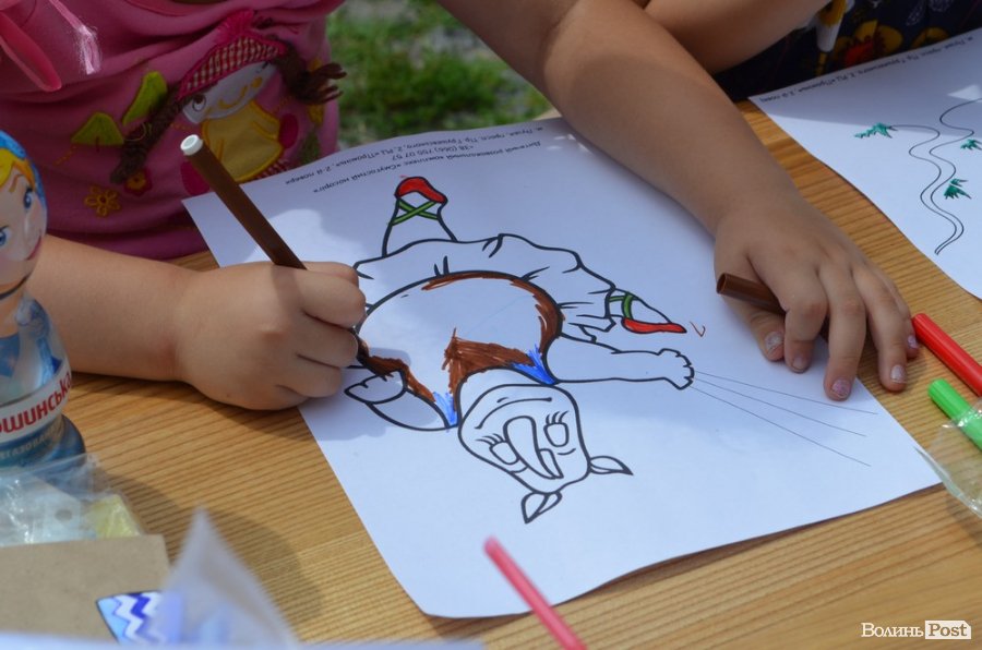 Малечу тут забавляв "Смугастий носоріг", окрім того, дітлахи залюбки розмальовували фігурки та розмальовки, а дівчаткам виплітали яскраві зачіски та робили кольоровий бодіарт.