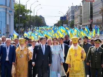 На відміну від процесії Московського патріархату, яку очолили депутати від «Опозиційного блоку», хресний хід очолили військові капелани, президент із родиною та духівництво з усієї України, йдеться в сюжеті ТСН.19:30.