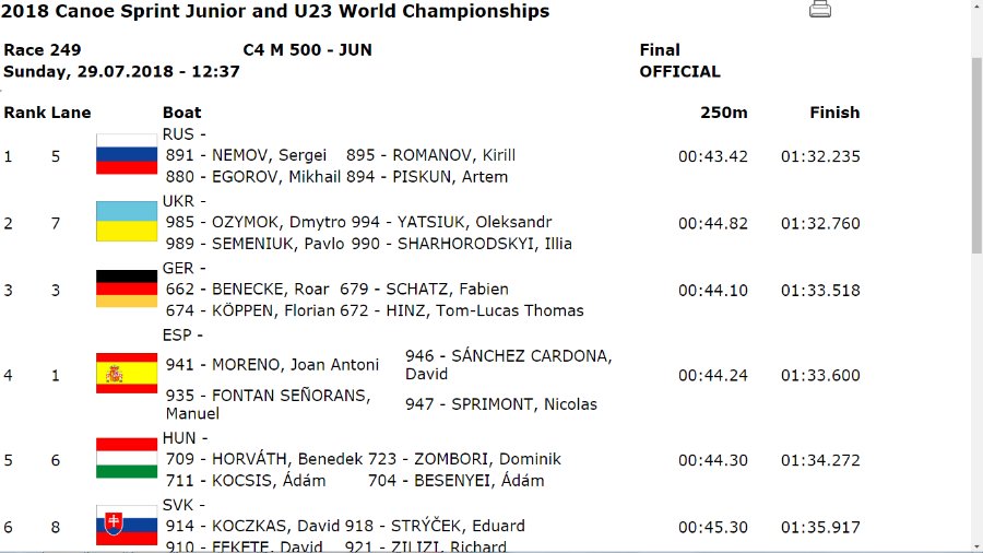 «Третя медаль для України! "Срібло" каное-четвірки на дистанції 500 м! Дмитро ОЗИМОК зі Львова, Олександр ЯЦЮК, Павло СЕМЕНЮК (обидва - Ковель), Ілля ШАРГОРОДСЬКИЙ з Южного - 1.32,760.