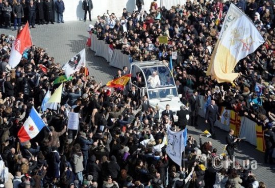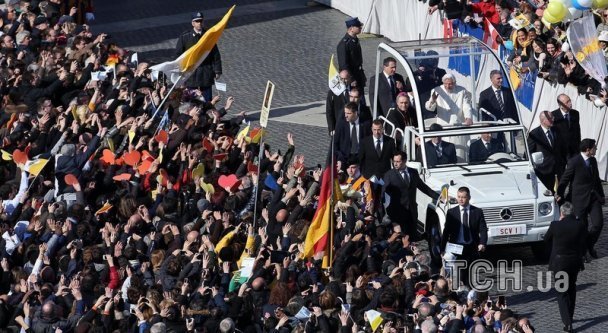 Десятки тисяч віруючих проводили аплодисментами понтифіка, який залишив площу Святого Петра на «папамобілі».