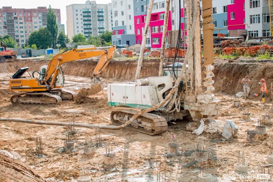 На будмайданчику викопали котлован та саме заливають сваї для будинків 3 та 4 секції, а також продовжують розбудовувати 2 чергу - тут якраз зводять 7 поверх.