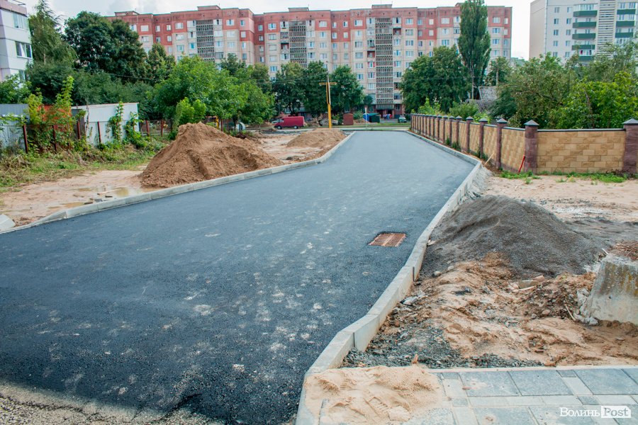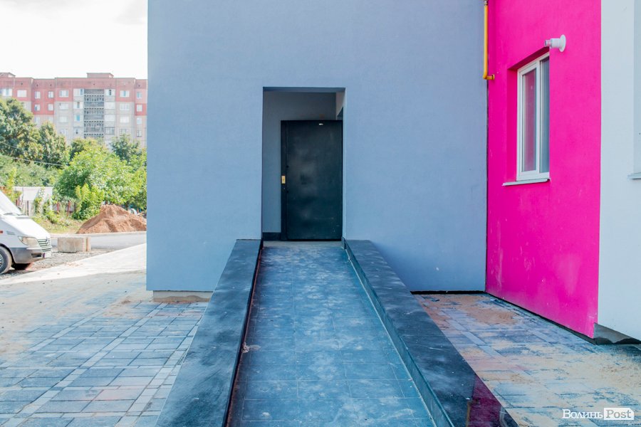 Робітники саме завершують вкладати пішохідну зону, а обабіч вже красується широкий та зручний пандус, який стане у пригоді мамам із візочкам та забезпечить безперешкодне потрапляння додому людям із додатковими потребами.