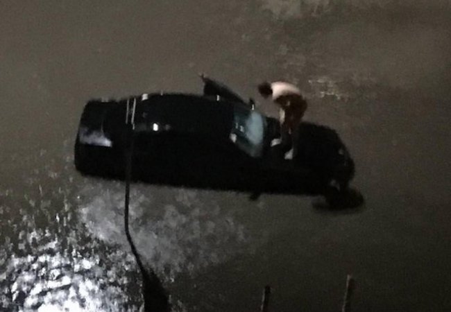 Очевидці повідомляють, що вода сходить, але дуже повільно. В результаті негоди залило автомобілі, які були припарковані поруч.