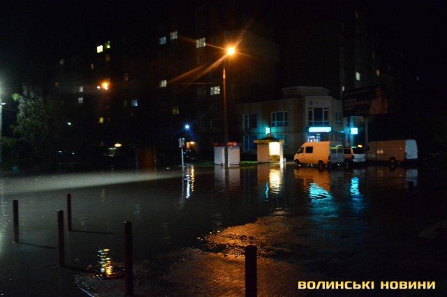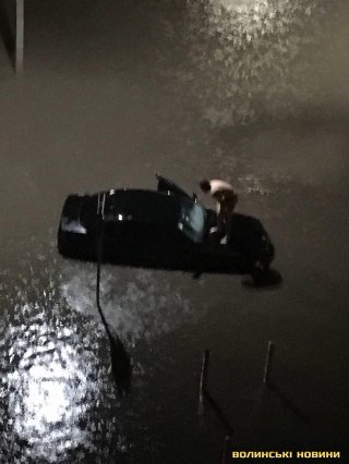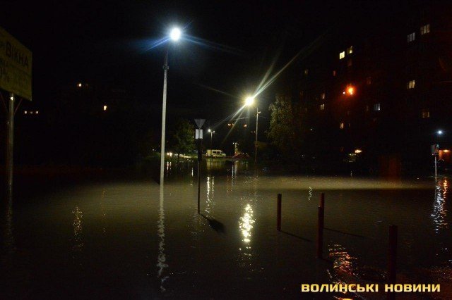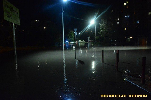 Гроза, яка супроводжувалась рясною зливою, спричинила потоп на низці луцьких вулиць, зокрема Кравчука та Воїнів-Інтернаціоналістів.
