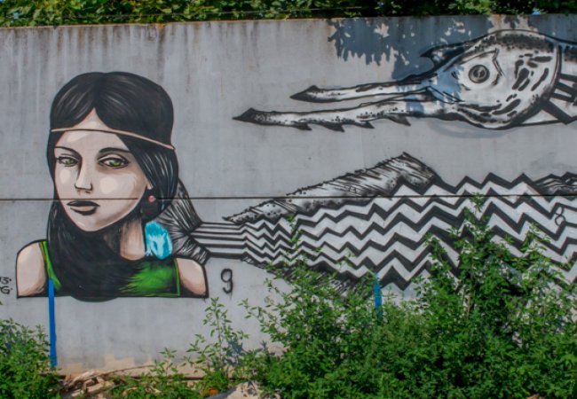 Графіті, які прикрашають стіну, створюють на вулиці відчуття сучасної картинної галереї під відкритим небом.