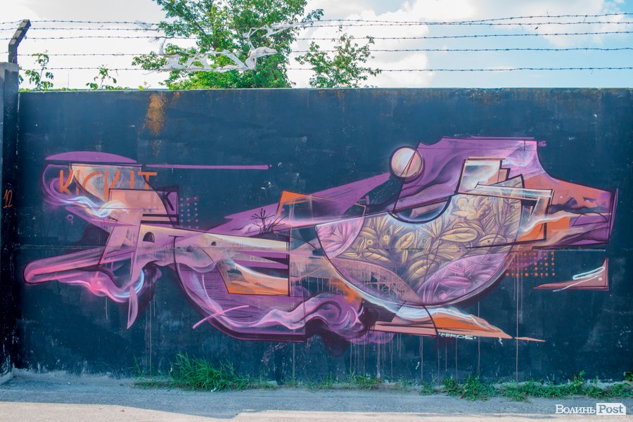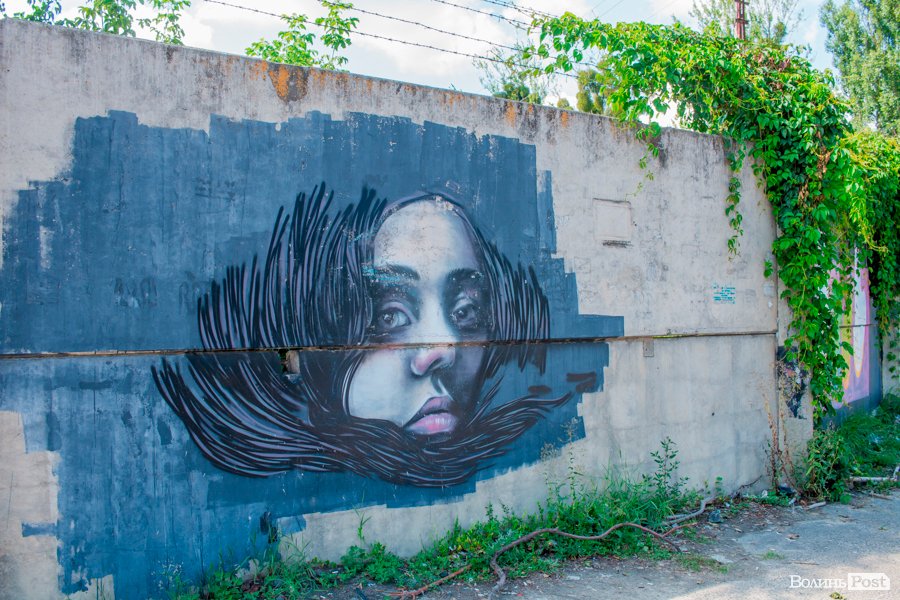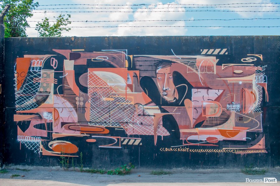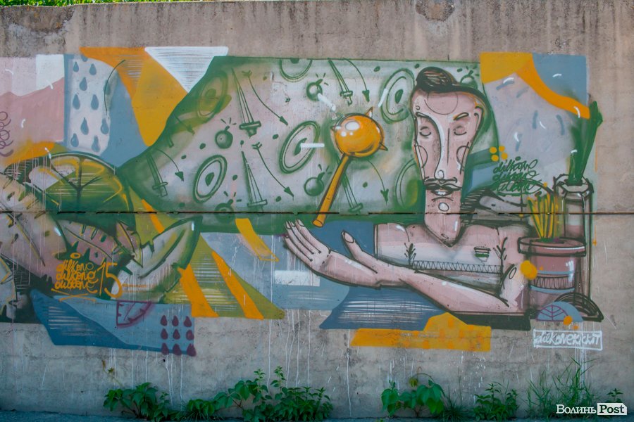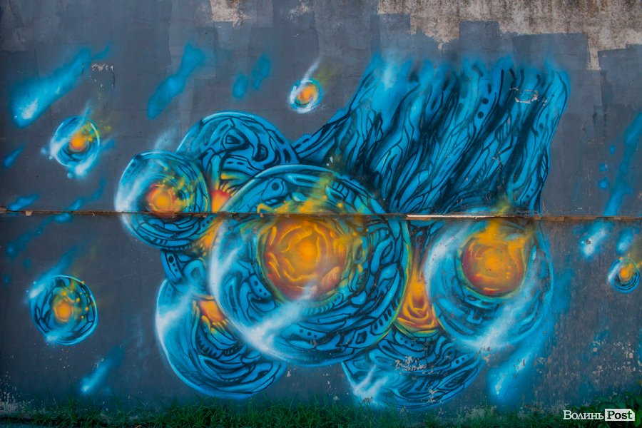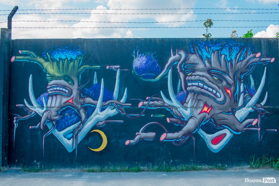 На вулиці Єршова у Луцьку вуличні художники розмалювали величезну стіну десятками графіті.