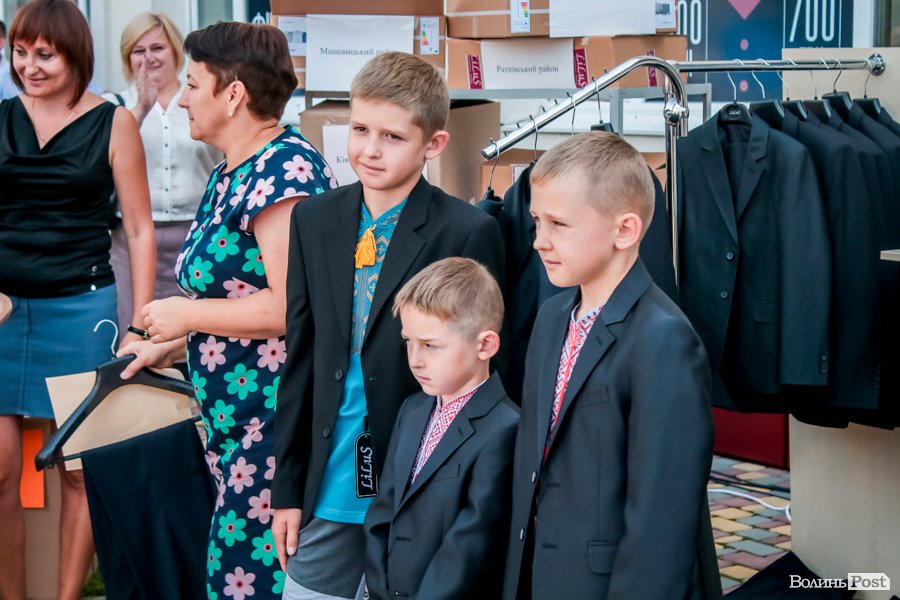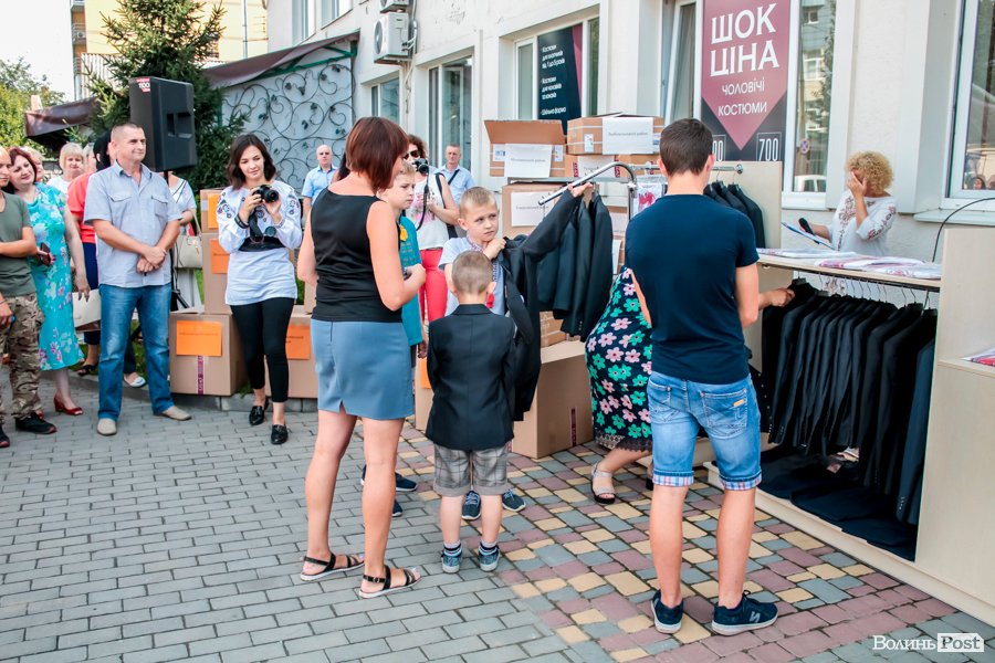У Луцьку відбулася благодійна акція для дітей загиблих атовців. Малюкам подарували шкільну форму.