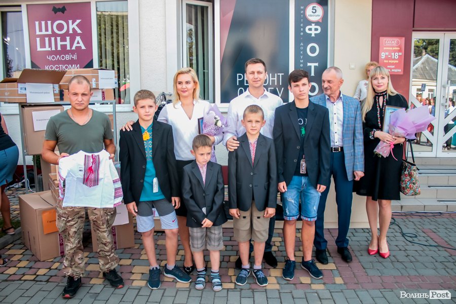 У п'ятницю, 3 серпня, голова райдержадміністрації Ігор Ярмольський та його заступник Інна Бас вручили 13 шкільних форм для хлопчиків із числа сімей учасників АТО.