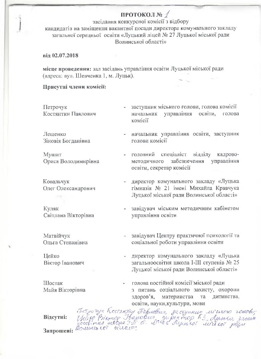Хто може стати директором школи №27 у Луцьку. ДОКУМЕНТ