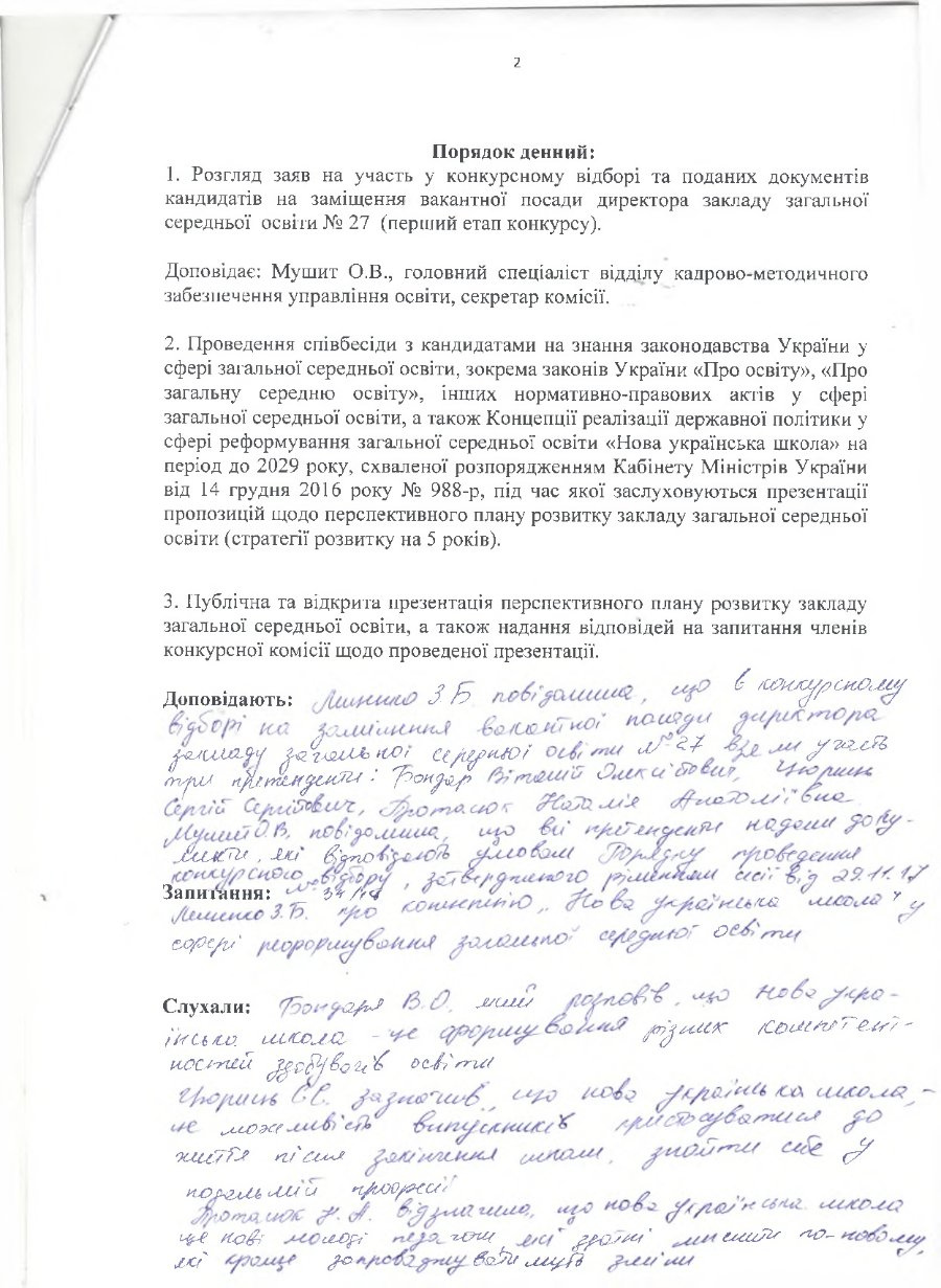 Члени конкурсної комісії запитали у кандидатів, яким вони бачать ліцей №27.