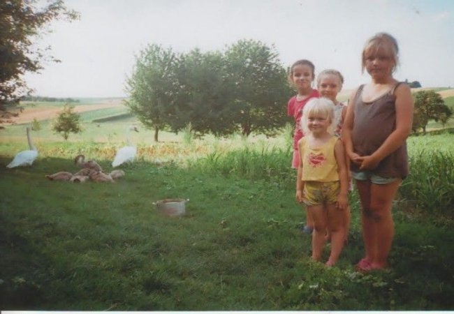 В один з дворів села Пірванче Горохівського району, де саме поралася Мирослава Демчук, зайшли лебідь із лебедихою, а за ними п’ятеро лебедят.