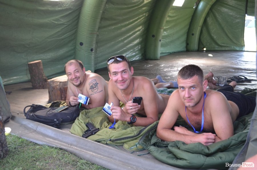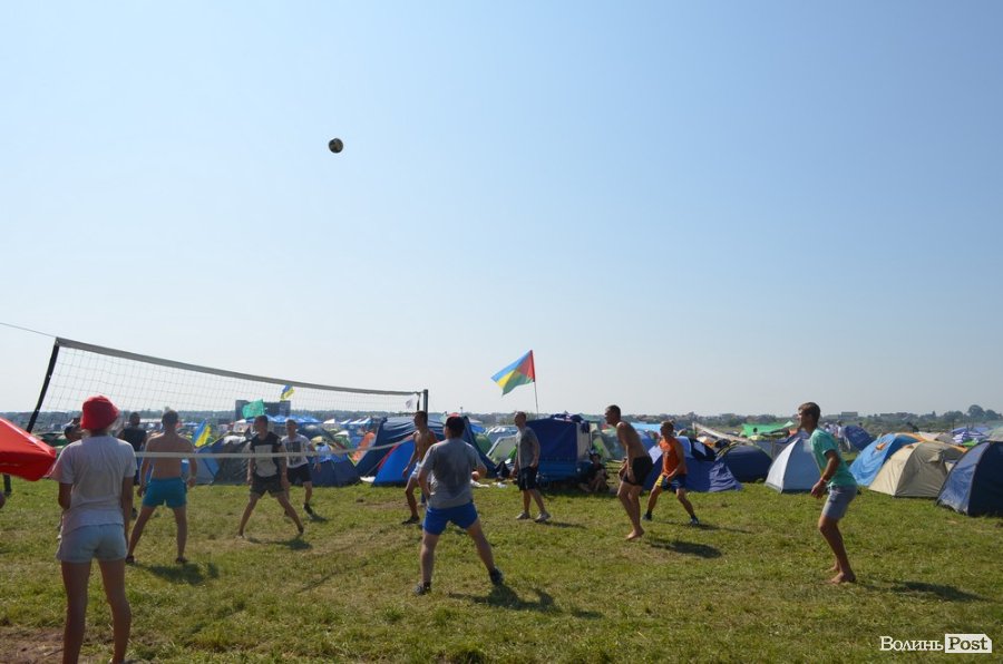 На фестивальному полі розгорілися спортивні баталії - тут змагаються кращі волейболісти-любителі. Трохи далі монтують площу, де згодом будуть бої.