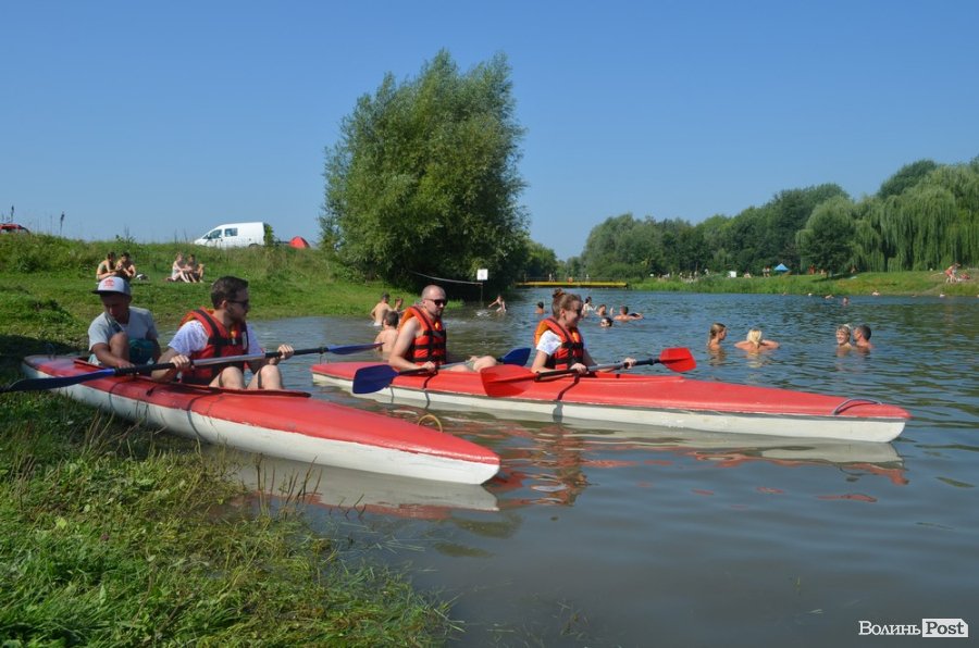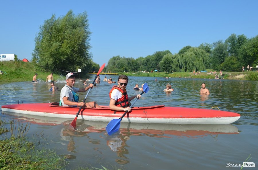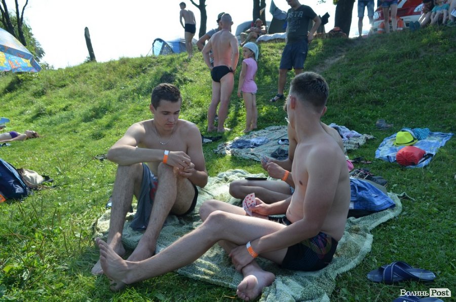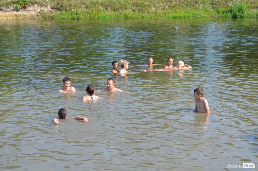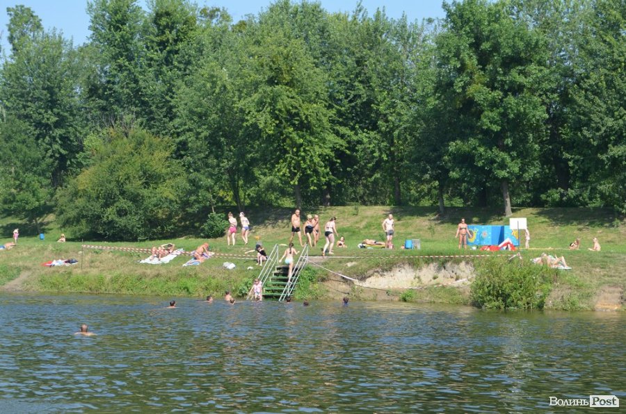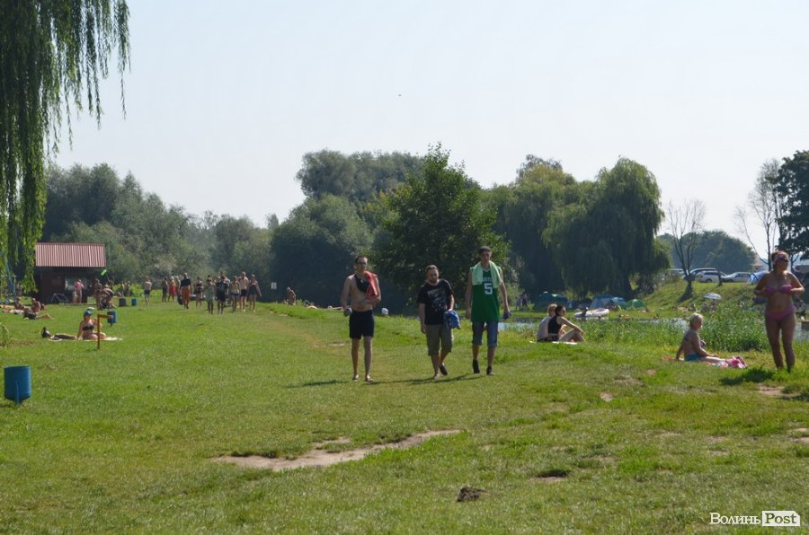 На місці для купання - справжній аншлаг. "Бандерштатівці" вже оцінили прохолодні хвилі Стиру та затінок на березі, тому тут постійно купається та засмагає багато людей.