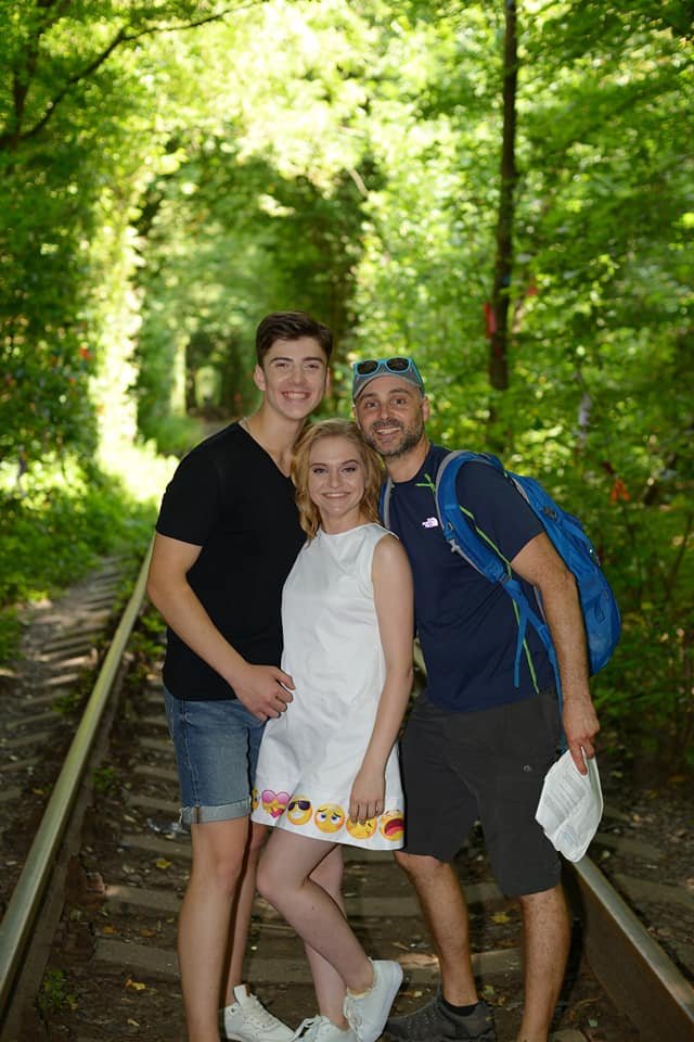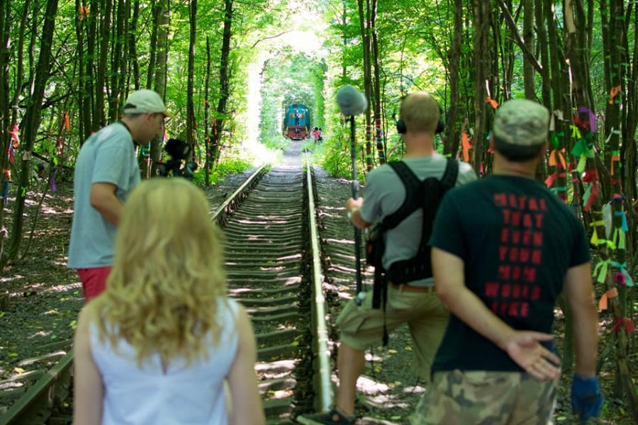 "Фото зі вчорашніх зйомок телевізійного шоу "Кріс Таррант. Екстремальні поїздки на залізниці" у Тунелі кохання (зйомки відбувалися по обидва боки) для телеканалу Channel 5 (Лондон, Велика Британія", - написала Хазова.