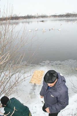 Із ініціативи відділу екології Луцької міської ради, який очолює Борис Сорока, 18 січня на місце зимівлі білих лебедів-шипунів на біологічних ставках «Луцькводоканалу» приїхали благодійники з підкормкою для птахів.
