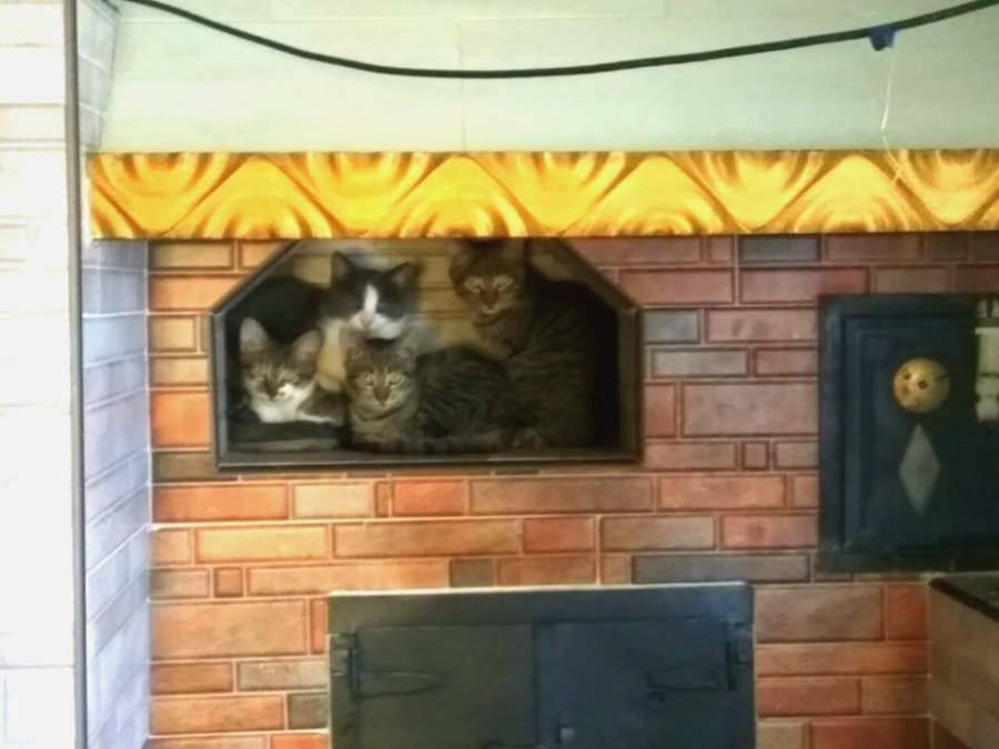 PS. То не картина - то справжні коти, які видерлися на грубку. І взагалі в селі їх аж 5 живе. Трьох підкинули узимку, тому не могли їх не лишити».