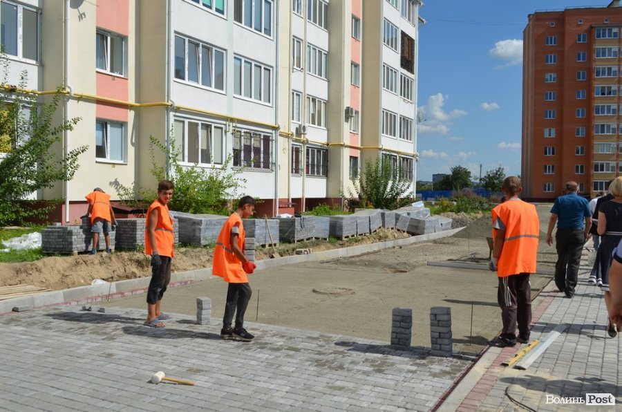 Поруч зі школою саме вкладають бруківку, аби діти не йшли до школи через болото. Окрім того, на подвір'ї встановили лавочки для відпочинку.