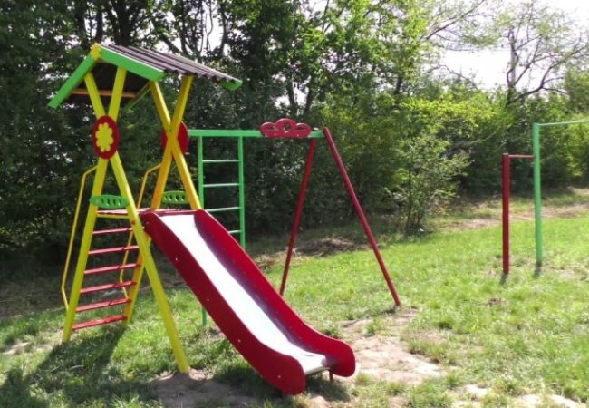 «Ще з дороги бачимо, що зміни – разючі. Так було – і ось так стало. Дитячий майданчик який складався з двох турніків підпертих кілочком, однієї гірки та гойдалки, не впізнати», – каже ведуча.