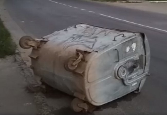 Бак, наповнений відходами, лежав просто на проїжджій частині на пішохідному переході. Близько 6-ї ранку транспорту на дорозі майже не було, автомобілі об'їжджали перешкоду.