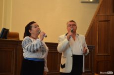 Своїми вокальними талантами вітали будівельників співаки Галина Овсійчук та Василь Чепелюк, які подарували присутнім пісні та теплі побажання.