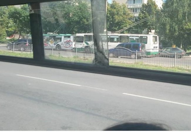 У Луцьку на Соборності тролейбуси стоять у черзі через аварію двох автівок, які перекривають рух “рогатим”.