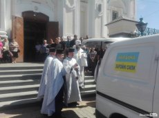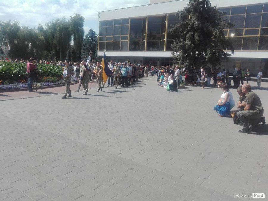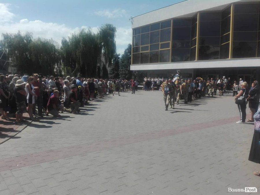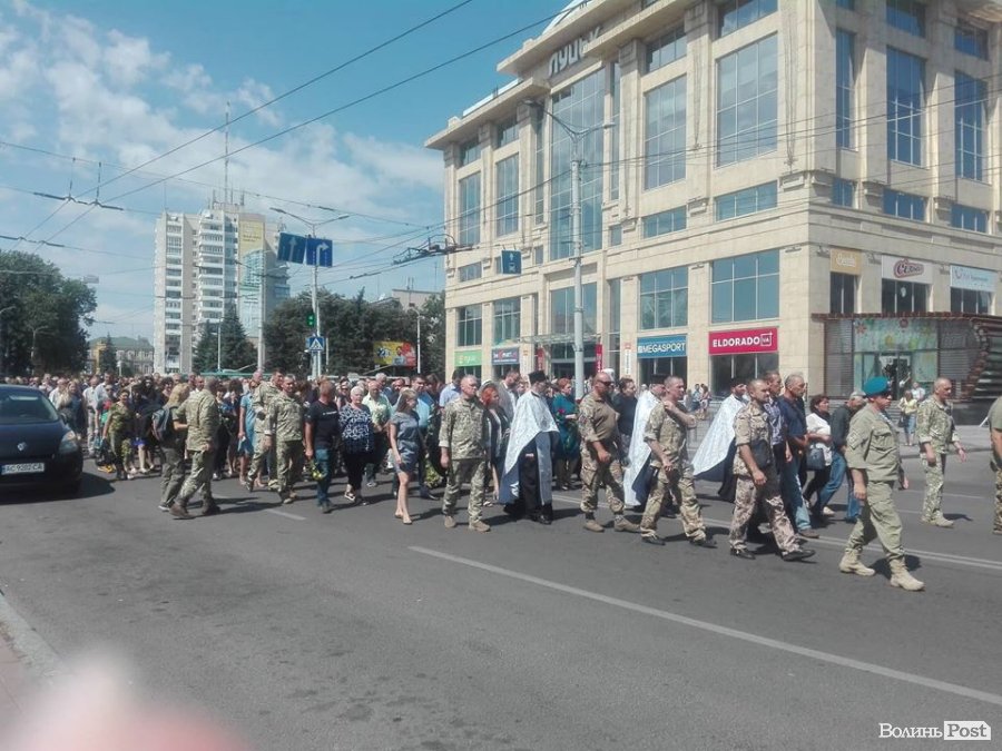 У нижньому храмі Свято-Троїцького собору відбулася служба за упокій душі Андрія Єлістратова. Після громадської панахиди люди рушили скорботної ходою центральною вулицею Луцька – проспектом Волі – до гімназії № 4. Перехожі ставали на коліна перед жалобною процесією, віддаючи шану загиблому Герою.