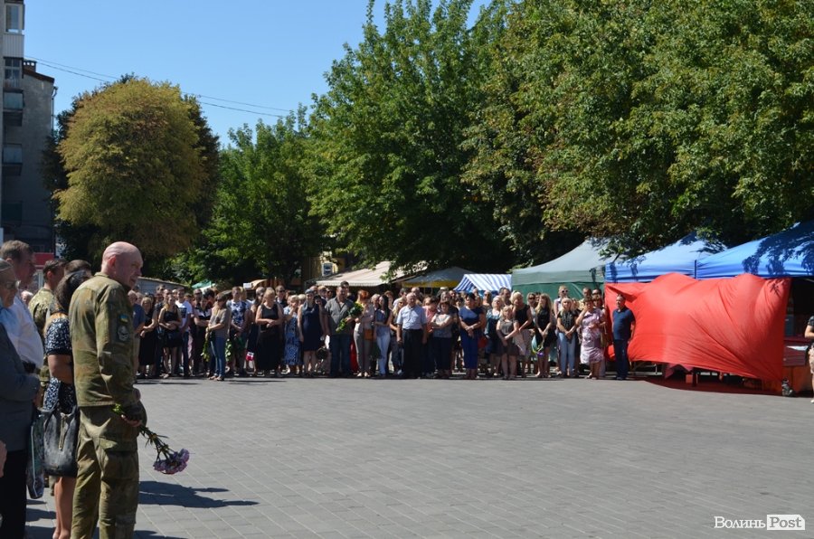 На Театральному майдані, де відбулася громадська панахида, зібралися сотні людей. Віддати шану воїну Андрію Єлістратову прийшли його рідні, друзі, знайомі, побратими, а також усі лучани, які відчували обов’язок вшанувати того, хто виборював наш спокій у війні з агресором.