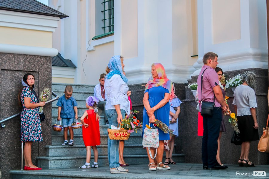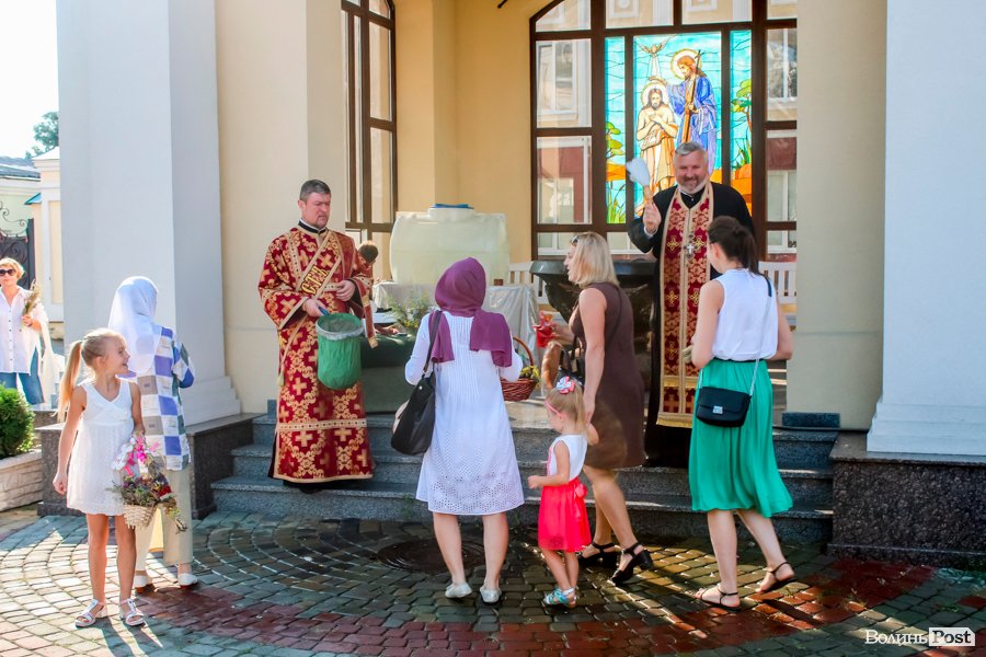 Людей, які святили букети, воду та мед, священики рясно поливали водою, вітаючи зі святом. Серед вірян, які нині прийшли до храму, - чимало й дітей.