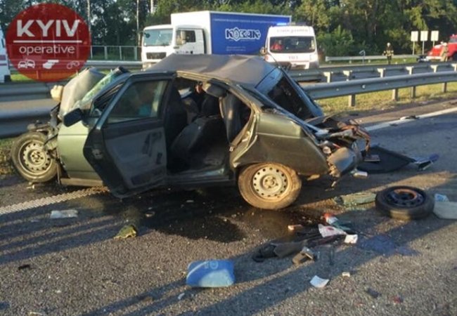 Смертельна аварія під Києвом: фура переїхала ВАЗ. ФОТО