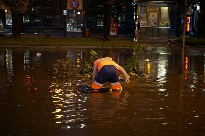 Стихія вирувала хвилин 20, але її наслідки долатимуть не одну годину. Злива залила Хрещатик - туди нанесло чимало бруду, землі. Рух вулицею відновили близько восьмої ранку - після того, як комунальники прибрали бруд.