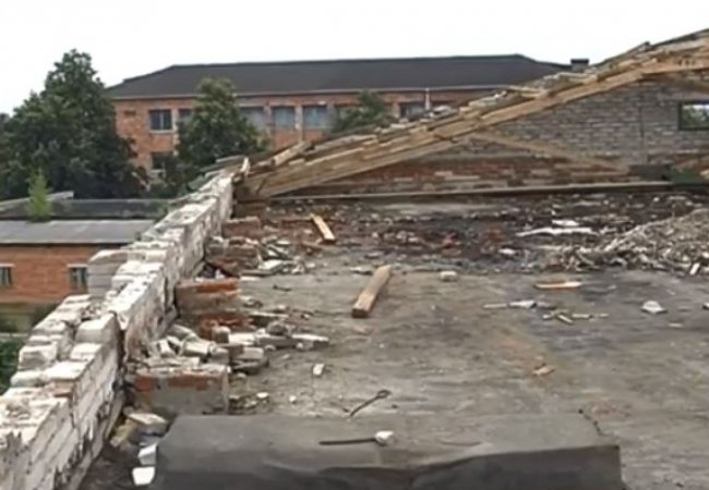 "Була сильна гроза. І так як у школі відкрили кришу, то вода крізь щілини у стелі потрапила до спортивного залу, учительської і актової зали", - розповіла педагог.