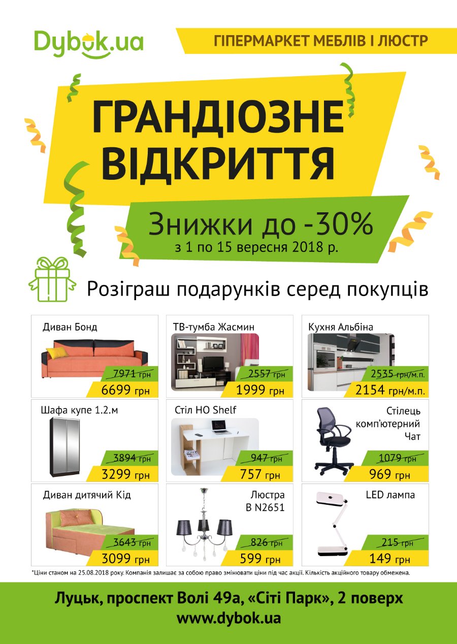 Якщо сучасні формати побутового, продуктового та фешн-рітейлу у Луцьку є, то з меблевим, м’яко кажучи, проблеми. І, як зауважив пан Олександр, саме це стало головною причиною відкриття у Луцьку гіпермаркету меблів та люстр Dybok.ua.