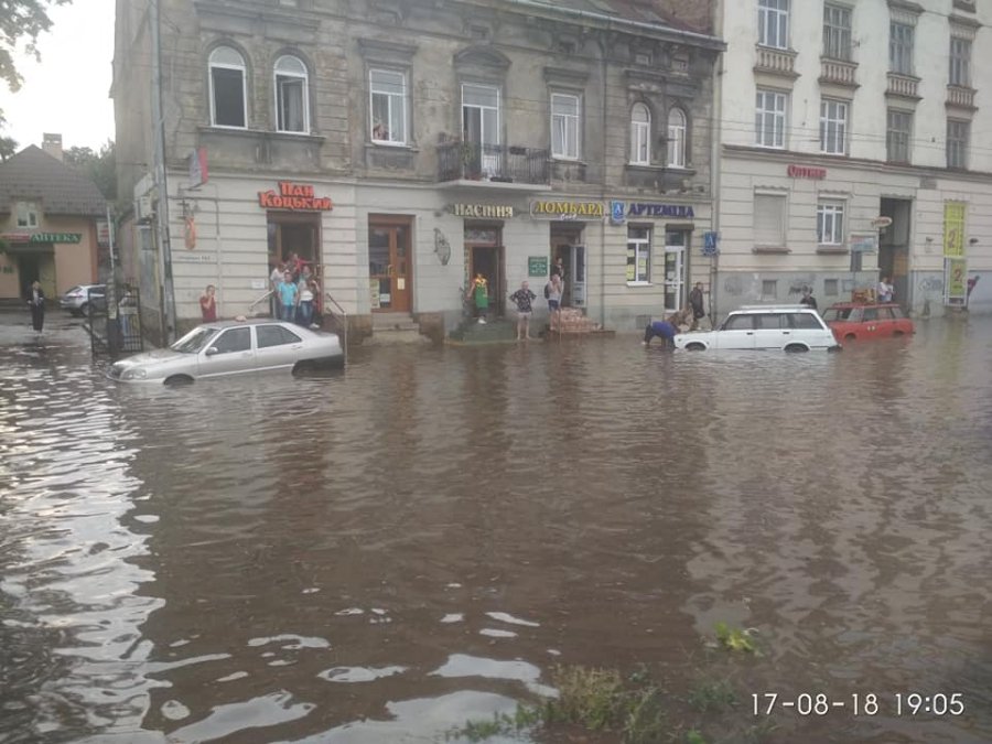 Львів накрила гроза. Подекуди рівень води доходив до пояса пішоходів.