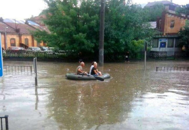 Пересуваються на човнах: у Львові – величезна злива. ФОТО