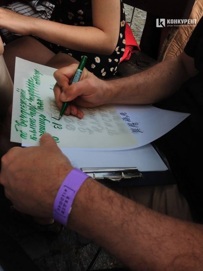 "Це зроблено для людей творчих та зацікавлених каліграфією. Але є тут й перехожі, яким просто цікаво подивитись на це дійство", – зазначив Кирило Ткачов