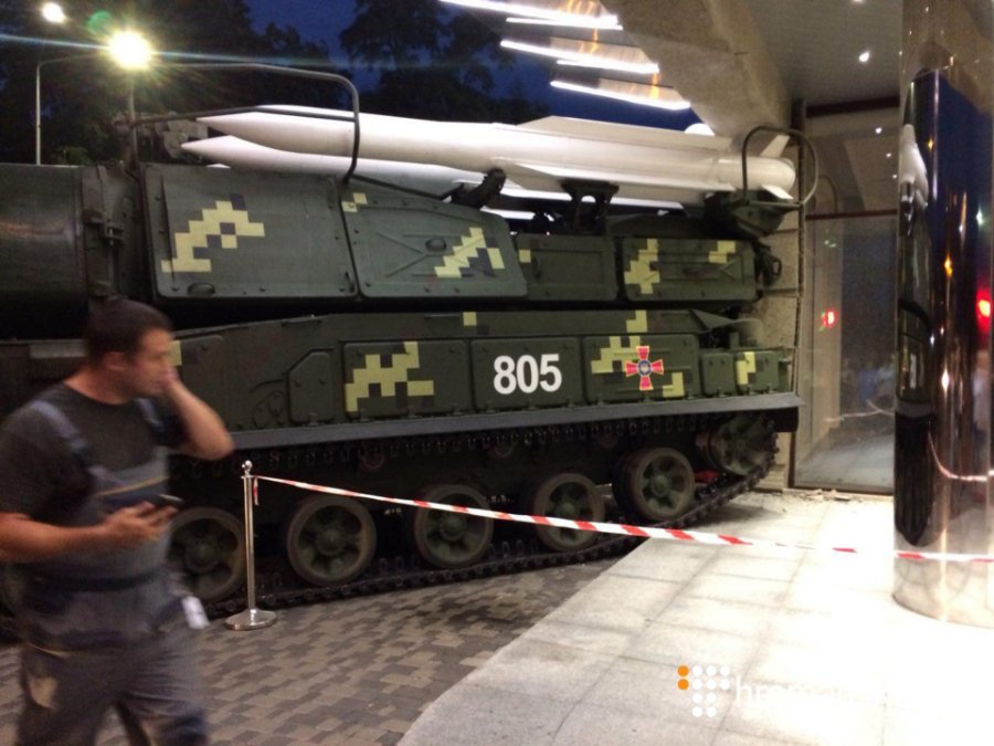У Києві, на вулиці Ярославській, сталася ДТП: зенітна установка «БУК» врізалася у будівлю бізнес-центру Astarte.