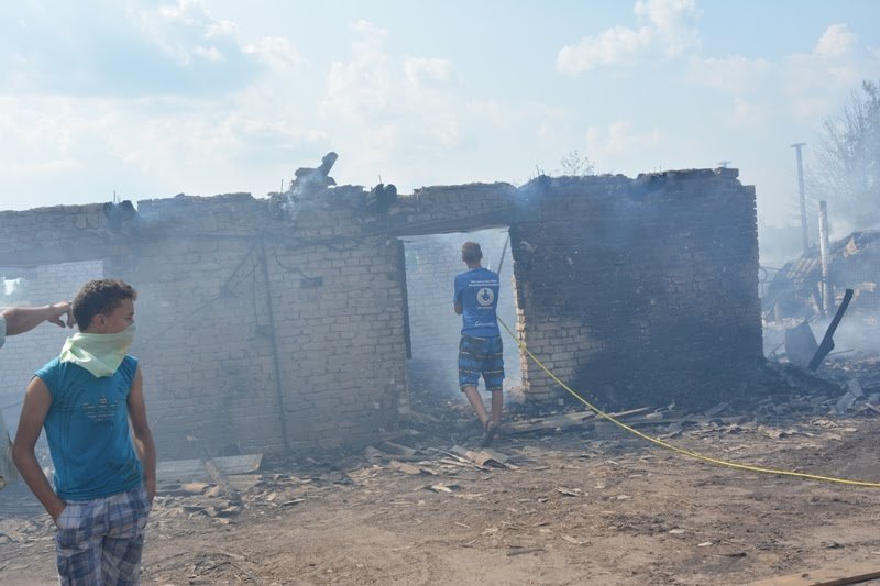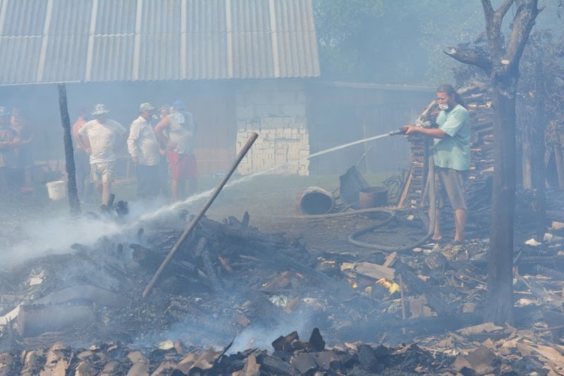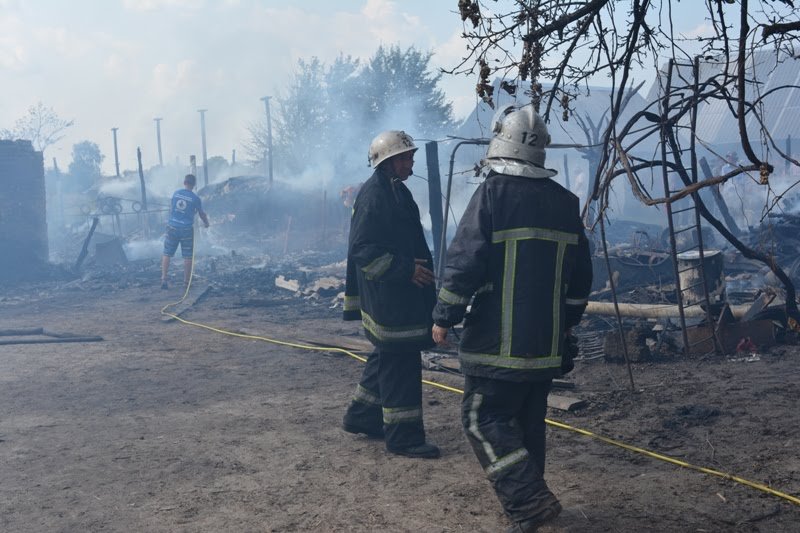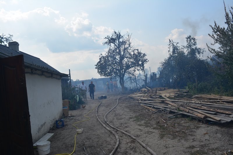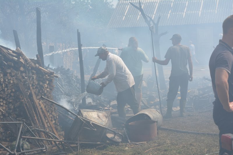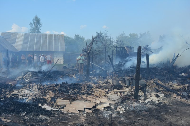 Спочатку сталося загорання однієї господарської споруди, зазначають очевидці. Затим через сильні пориви вітру та спеку вогонь відразу ж перейшов на іншу господарську споруду, лишивши після себе тільки стіни з цегли. Також згоріли стіжки сіна та дров.