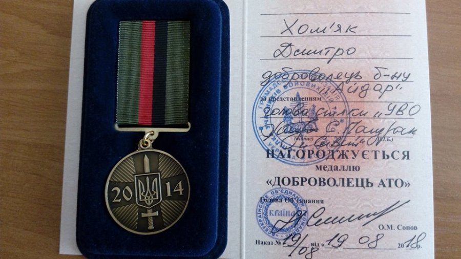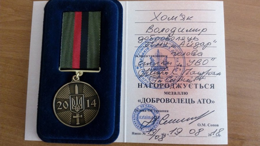 «Маю честь представити до нагороди від спілки учасників бойових дій «УВО» добровольців-айдарівців з Волині - рідних братів, Володимира та Дмитра Хом'яків!» - зазначив він.