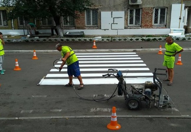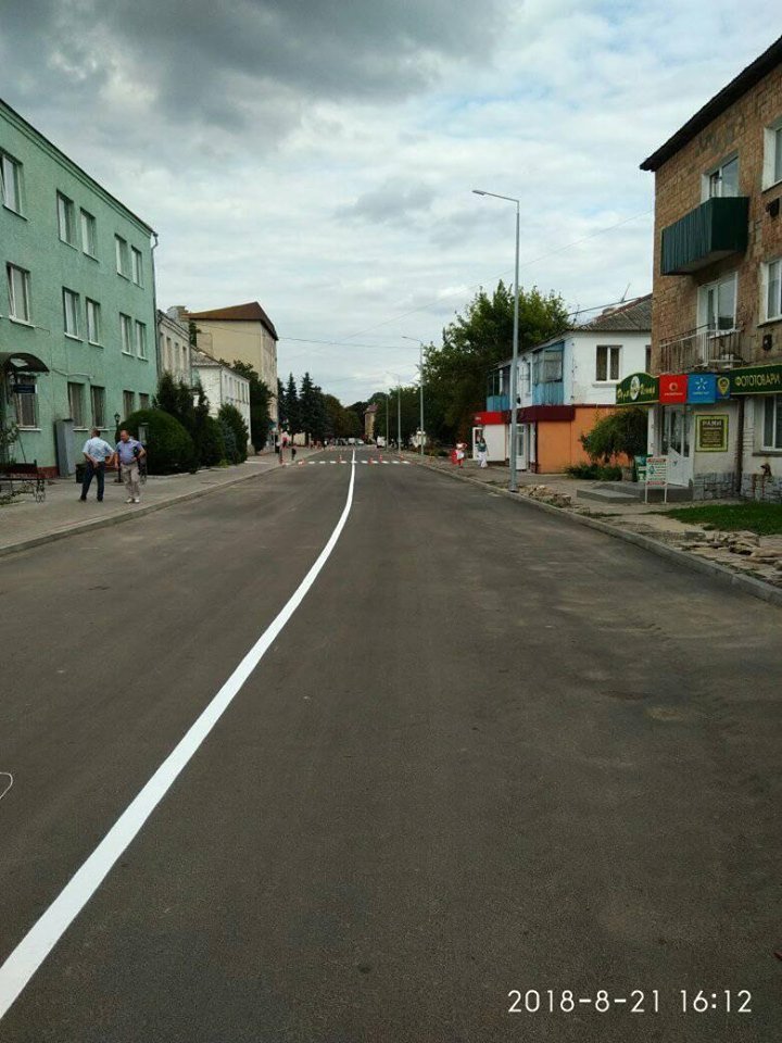 У центрі Горохова комунальники наносять нову дорожню розмітку.