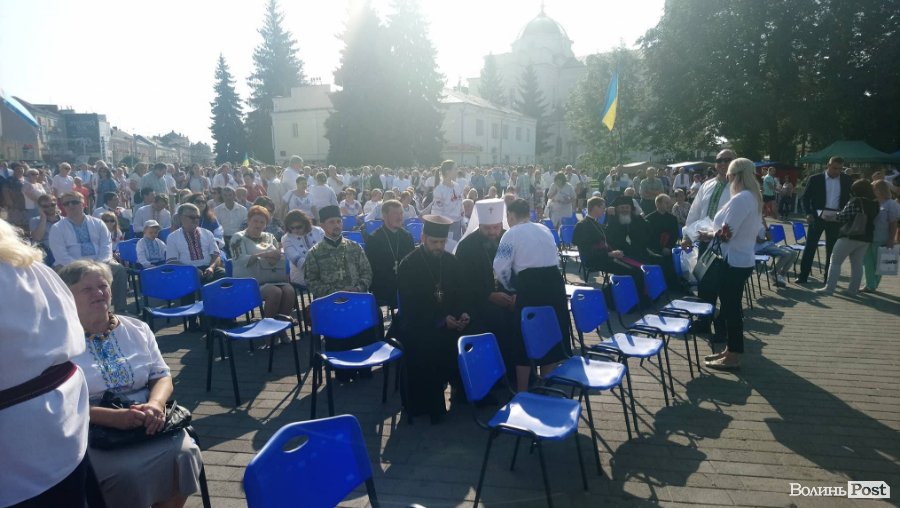 На центральній площі Луцька поки не велелюдно. Подивитися парад прийшли переважно люди старшого віку. Присутнє на перегляді й духовенство.