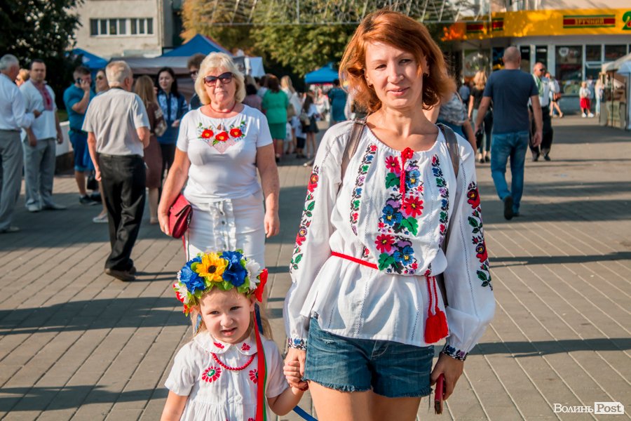 Мешканці та гості міста одягнули на святкування вишиті сорочки, сукні та футболки. Надали перевагу волиняни вишиванкам із натуральних тканин та світлих кольорів.