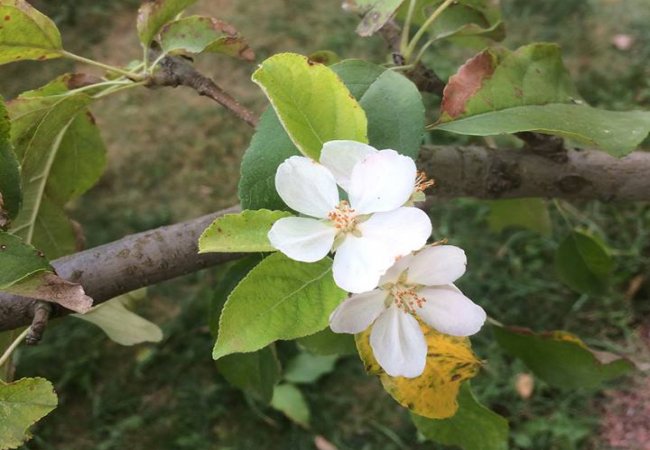 Фруктові дерева можуть зацвісти двічі за літо не лише в лікаря Яковенка. Причиною цвітіння є зайве підживлення деревець у другій половині літа. Багато вологи, багато поживних речовин, плюс високі температури пробуджують спокій деревця і воно починає цвісти.