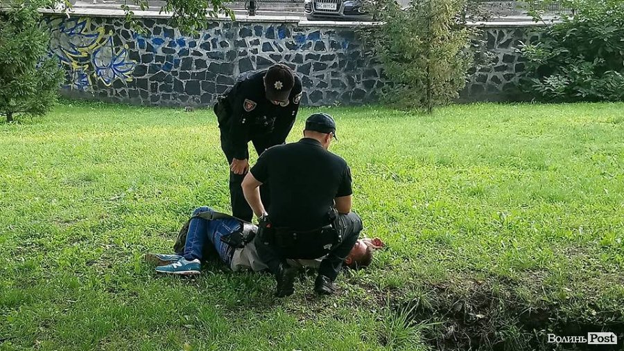 У Луцьку на газоні валявся п'яний озброєний чоловік. ФОТО