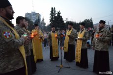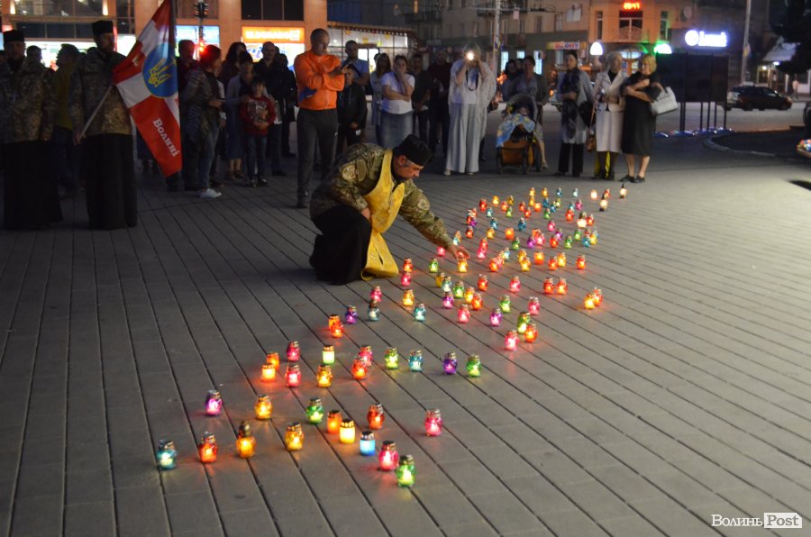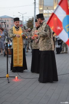 Священики відслужили літію та разом із усіма присутніми помолилися за душі полеглих. Опісля на Театральному майдані біля Стели Героїв із запалених лампадок сформували слово «Іловайськ».