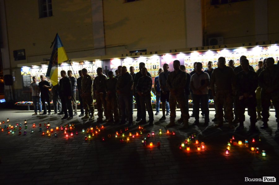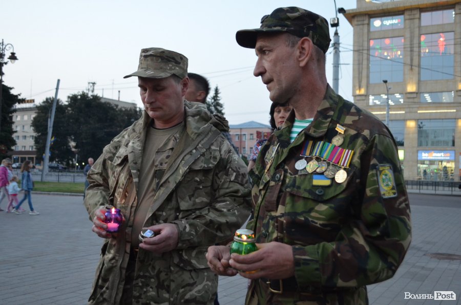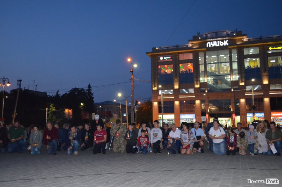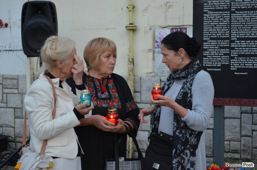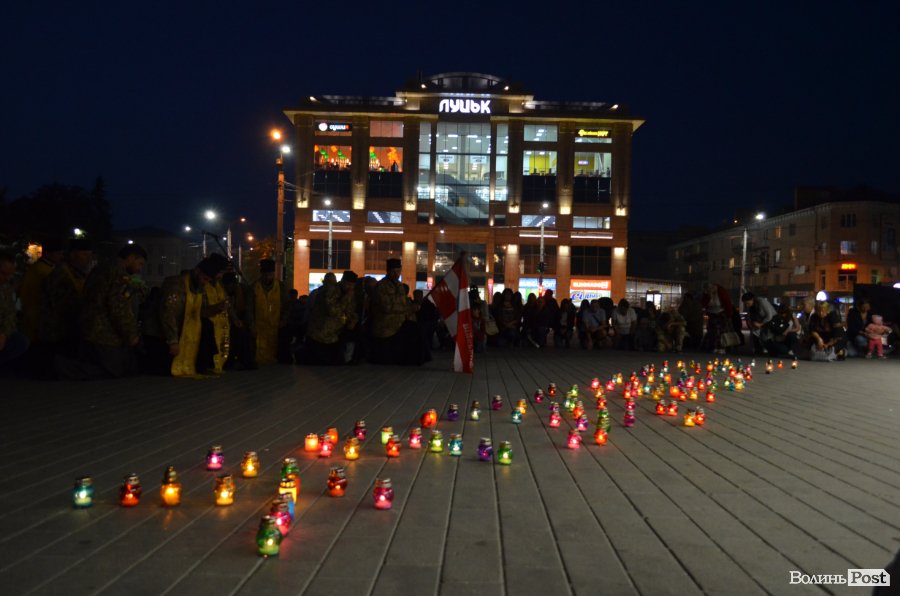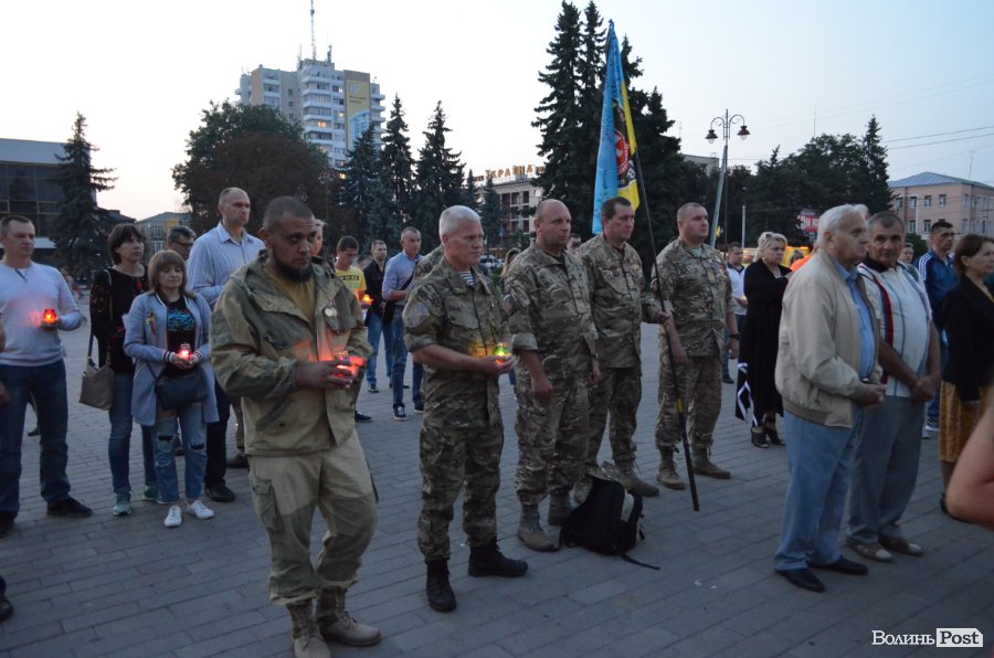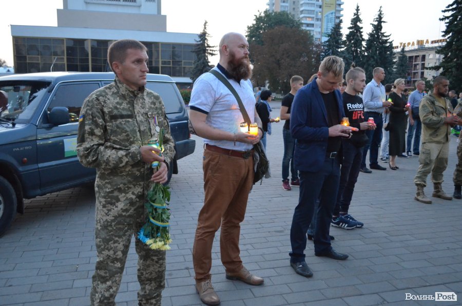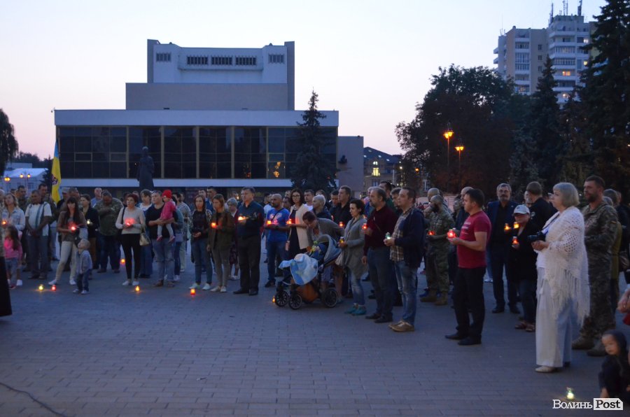 На Театральному майдані Луцька майже сотня містян зібралися, аби вшанувати пам’ять українських військових, які полягли при виході з оточення в Іловайському котлі.