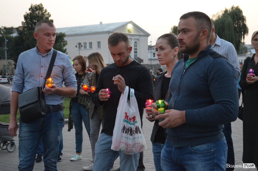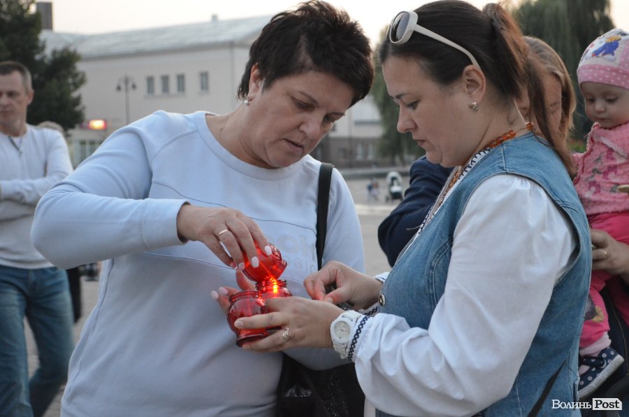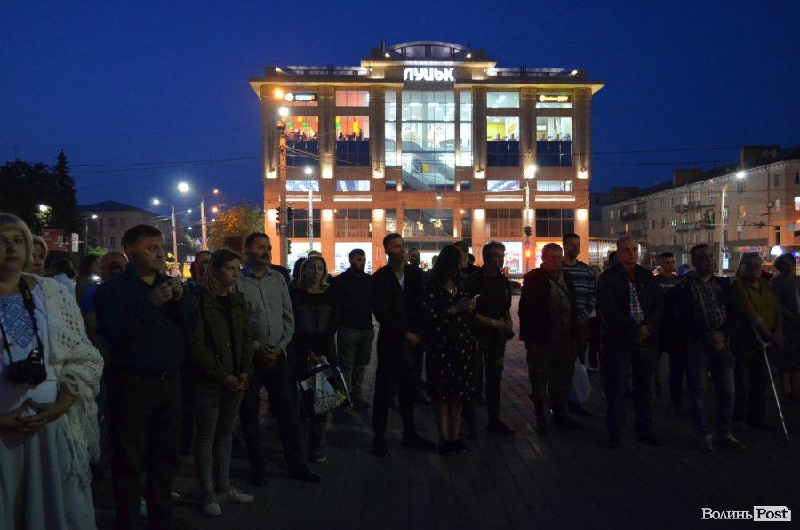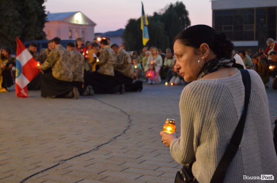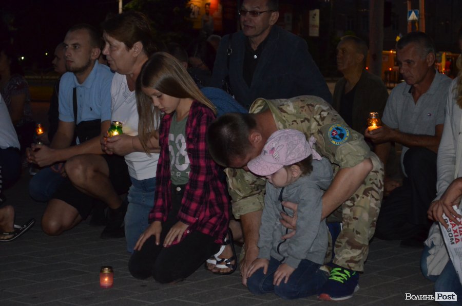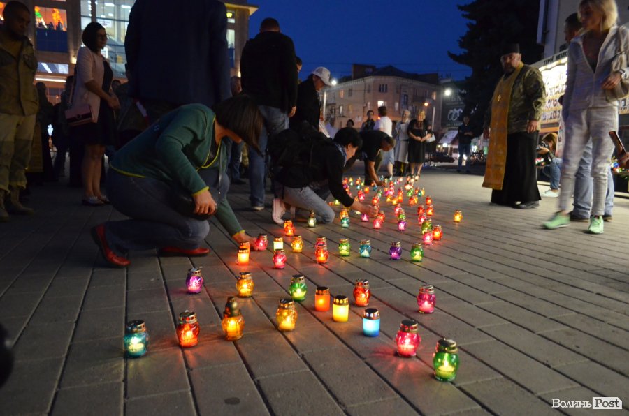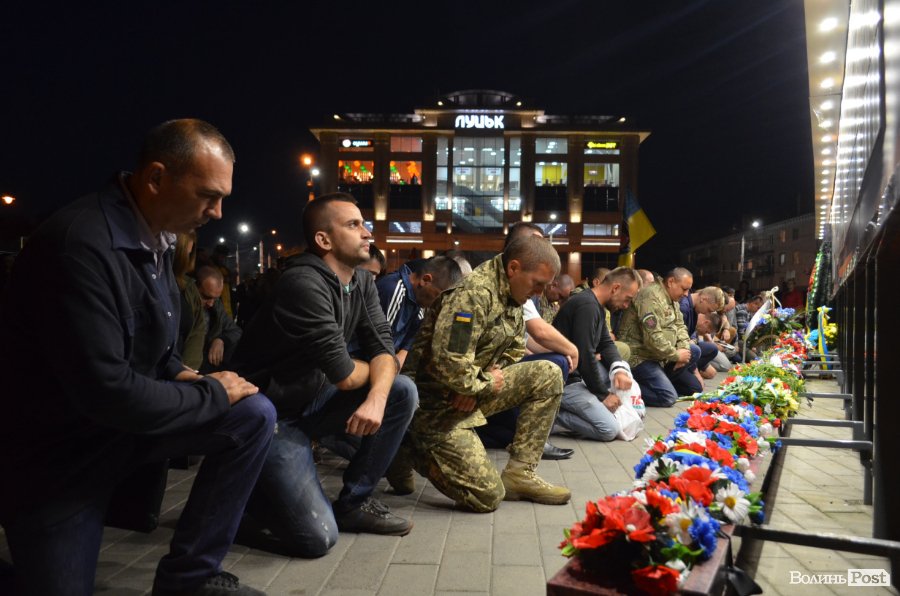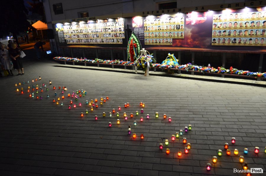 На Театральному майдані Луцька майже сотня містян зібралися, аби вшанувати пам’ять українських військових, які полягли при виході з оточення в Іловайському котлі.
