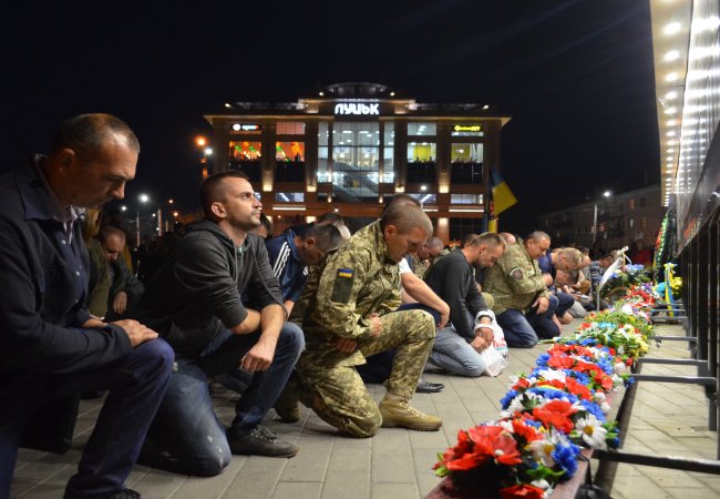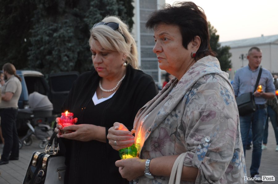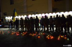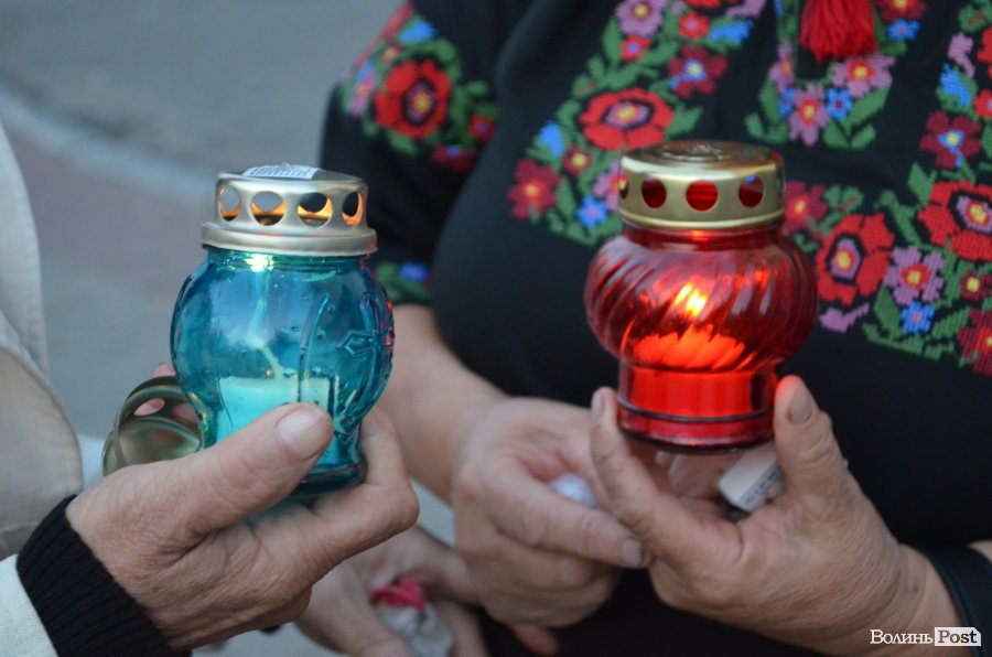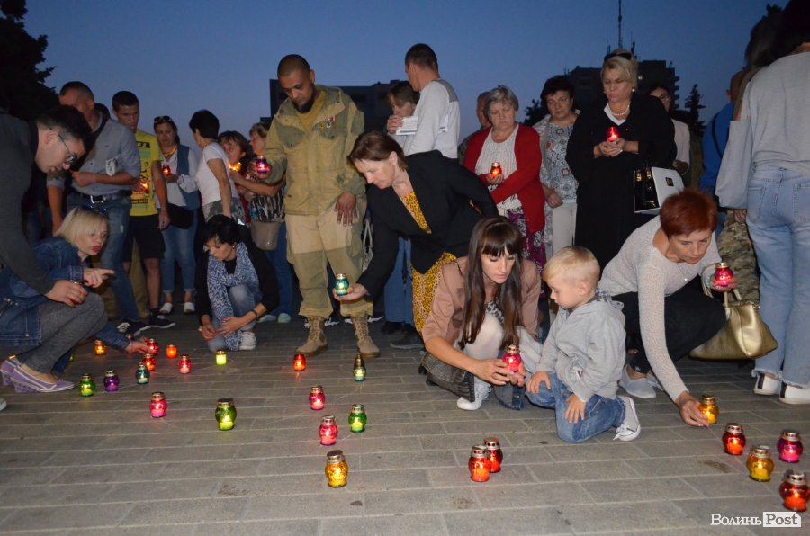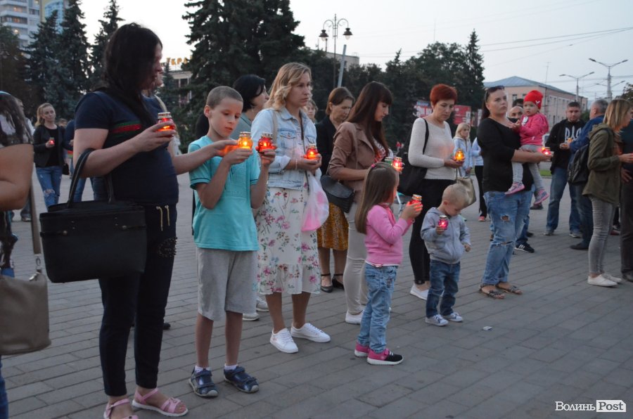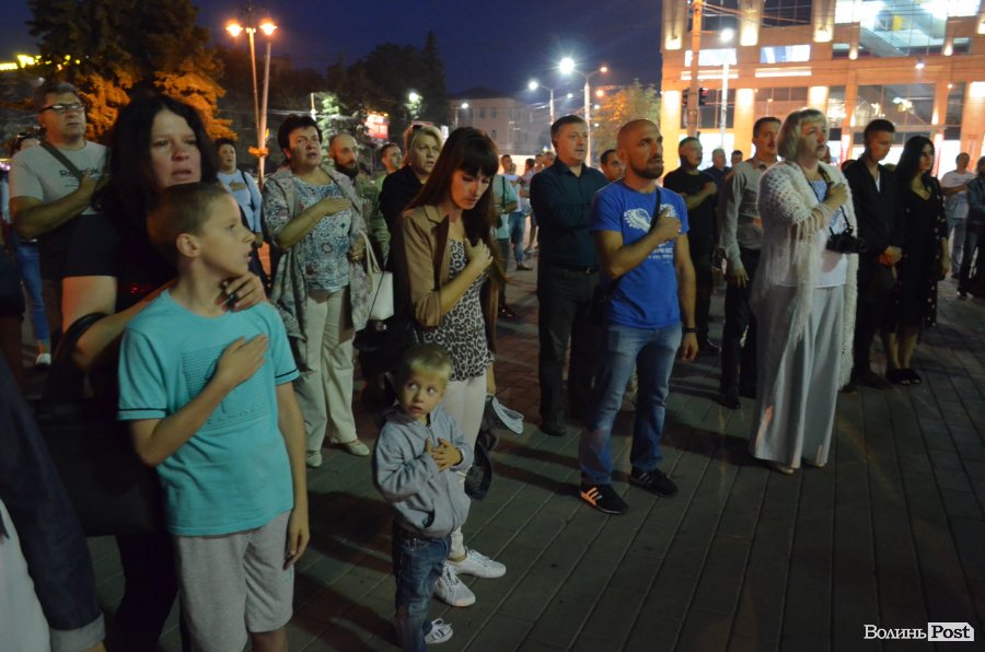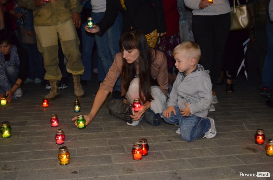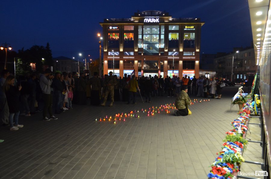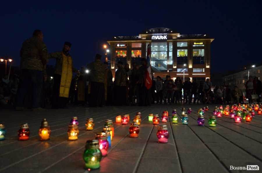 На Театральному майдані Луцька майже сотня містян зібралися, аби вшанувати пам’ять українських військових, які полягли при виході з оточення в Іловайському котлі.