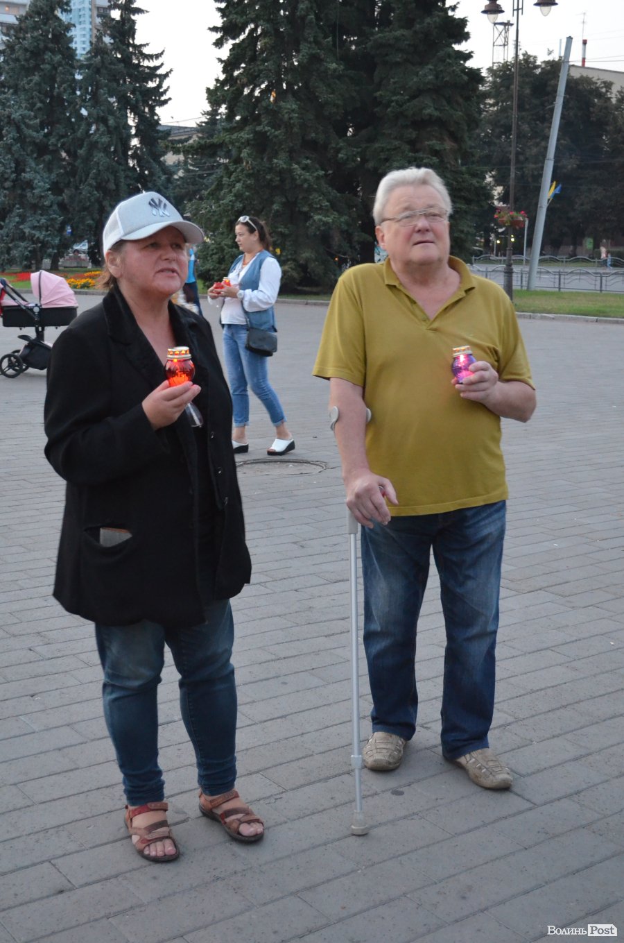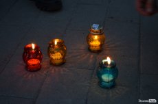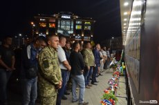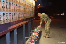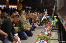 Люди принесли зі собою лампадки та квіти, обгорнуті чорними стрічками. Серед присутніх було чимало бійців у формі, які прийшли віддати шану полеглим побратимам.